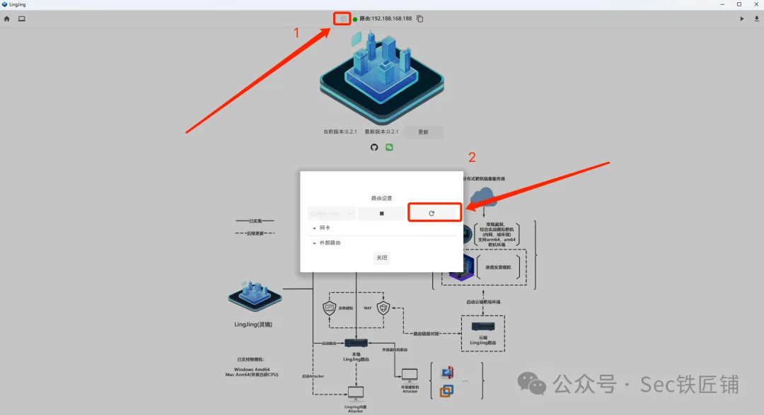 LingJing 是一款专为复杂网络环境渗透测试量身打造的桌面级本地网络安全靶场平台。支持在线下载和 免配置一键部署 靶机环境,平台内置路由 管理、监控打靶流量,快速启动靶机,满足从入门学习到红蓝队攻防实战的训练需求。后续版本将更新内置 Attacker 机器,进一步完善渗透测试打靶训练的完整流程,显著提升用户的训练体验和效率。本平台基于 Go+Fyne 构建图形界面,底层采用 QEMU 虚拟化技术,支持跨架构靶机启动。并且 能在 Mac M 系列芯片设备上启动 AMD64 架构靶机 ,确保在不同硬件环境下无缝开展测试与训练。
